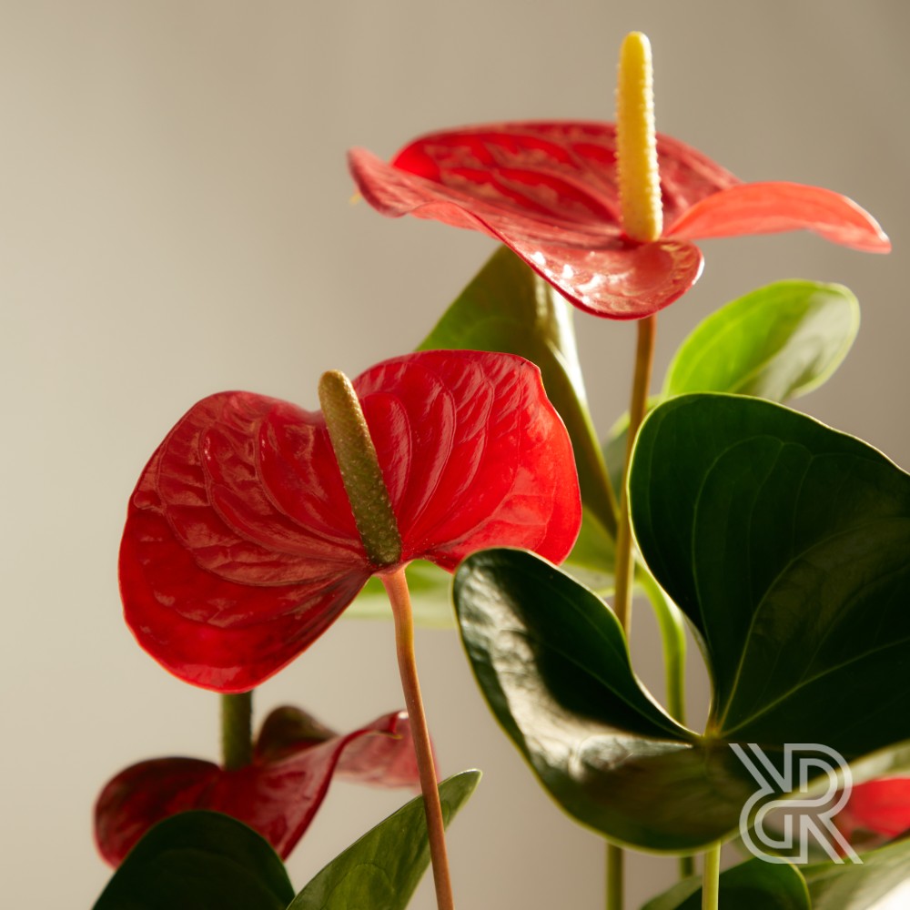 Стильное эффектное декоративное цветущее растение. Характеризуется сердцевидными листьями темно-зеленого цвета с многочисленными крупными глянцевыми цветками насыщеного ярко-красного цвета. Может достигать в высоту 50-60 см, растет довольно медленно. Соцветия сохраняют декоративность 3-4 недели, и при правильном уходе растение может цвести практически круглый год. Отлично фильтрует воздух, устраняя вредные вещества. Станет прекрасным украшением интерьера и подойдет начинающим цветоводам.
