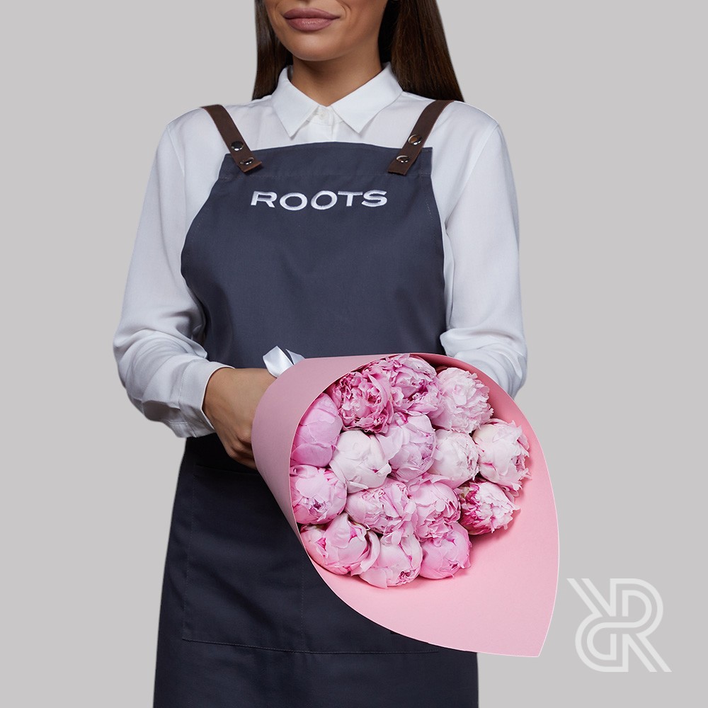 Монобукет из 15 ароматных пионов сорта Сара Бернар. Отличаются пышными махровыми бутонами нежной жемчужно-розовой окраски и ярким сочным ароматом. Пионы имеют ограниченный сезон и доступны для заказа несколько месяцев в году. Упакованы в плотную бумагу розового цвета и перевязаны декоративными лентами.